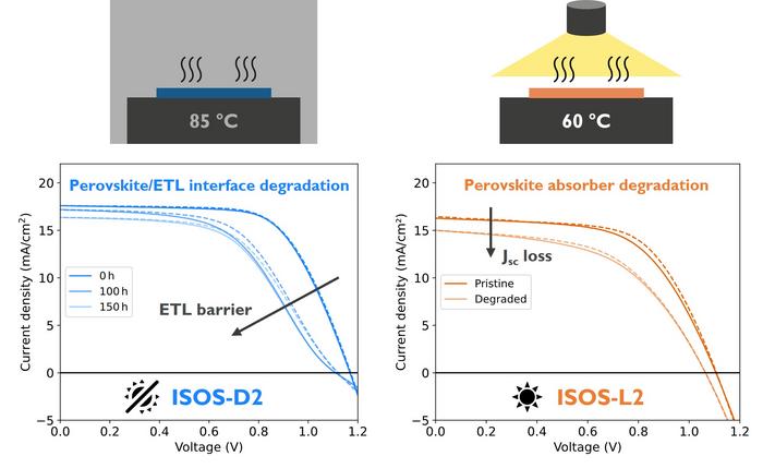 También utilizaron un conjunto de herramientas de caracterización eléctrica que combina análisis corriente-voltaje (IV), fotoluminiscencia (PL) y capacidad-frecuencia (C-f). Las células solares fueron expuestas a una intensidad luminosa de 1 sol y a una temperatura elevada de 60 °C.
