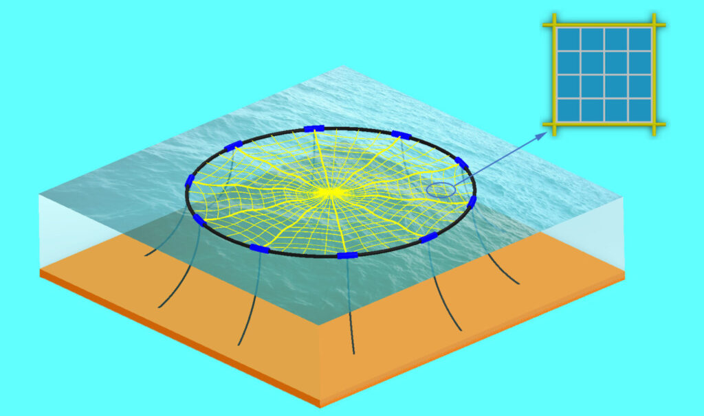 Los investigadores propusieron dos conceptos de diseño según el tipo de estructura de red. El primero emplea marcos formados por líneas tanto en espiral como radiales, lo que permite que el sistema se deforme con las olas como una estructura unificada. La configuración alternativa consiste en desplegar el sistema entre torres de aerogeneradores marinos, que proporcionan soporte estructural para la red. En ambos diseños, la matriz fotovoltaica presenta una disposición cuadrada.