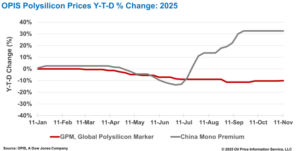 Los precios mundiales del polisilicio registraron un ligero repunte esta semana, respaldados por los informes sobre el aumento de los precios de los pedidos al contado. Los participantes en el mercado atribuyeron parte de este aumento a los clientes que buscan fuentes de suministro seguras en respuesta a la incertidumbre que rodea a la investigación de seguridad nacional de la Sección 232 de EE. UU. sobre el polisilicio y las iniciativas políticas con las regulaciones sobre entidades extranjeras de interés (FEOC).