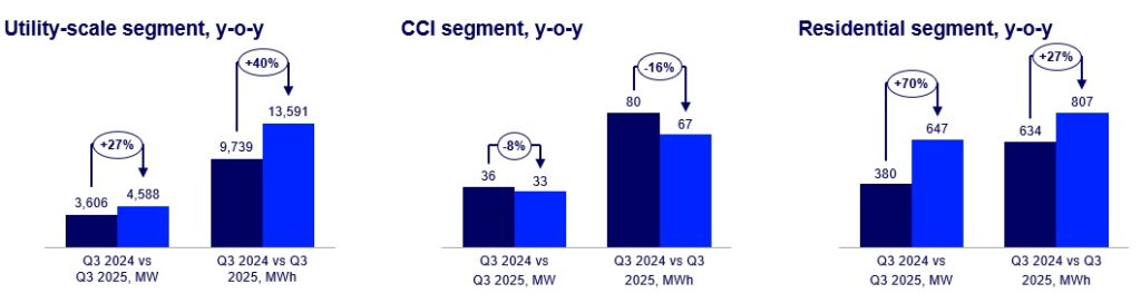 En el tercer trimestre de 2025, se instalaron más de 5,3 GW de almacenamiento de energía en todo el país. Las instalaciones del tercer trimestre aumentaron un 31 % interanual. El segundo trimestre de 2025 sigue siendo el trimestre récord en cuanto a despliegues, con una disminución del 6 % intertrimestral en el tercer trimestre.