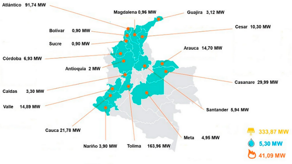 Colombia sumó en 2025 un total de 333,87 MW de nueva capacidad solar fotovoltaica, lo que ubica a esta tecnología como la principal fuente de expansión de la generación eléctrica durante el año. Con estas incorporaciones, la potencia fotovoltaica instalada en el país llegó a 1.594,08 MW, equivalentes al 7,6% de la capacidad instalada nacional, en un contexto marcado por ajustes regulatorios y movimientos en el estado operativo de múltiples proyectos.