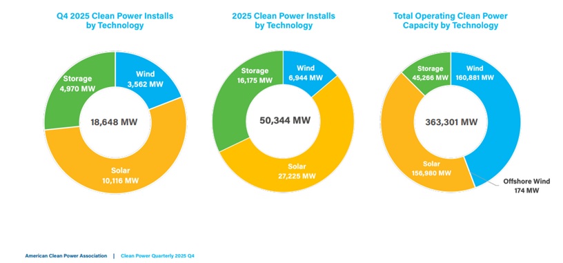 El sector de la energía limpia de EE. UU. batió récords en 2025, con la puesta en marcha de 50 344 MW de nueva capacidad a gran escala, lo que supone la primera vez que las instalaciones anuales superan los 50 GW.