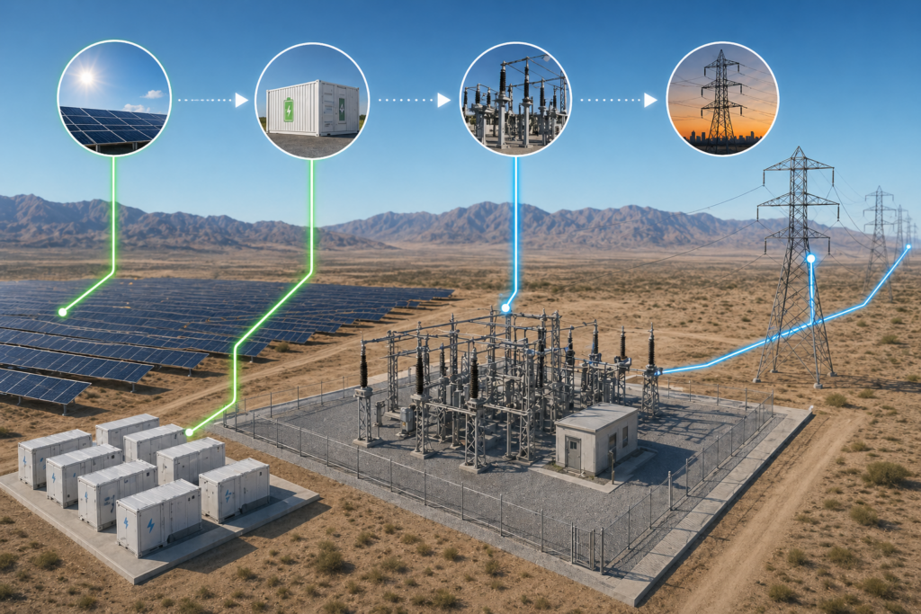La autorización contempla la construcción de una subestación de 220 kV en las cercanías de Ovalle, en la región de Coquimbo, que permitirá la conexión del proyecto al Sistema Eléctrico Nacional. La instalación se diseña con capacidad disponible para habilitar futuras expansiones y acceso abierto en la zona.