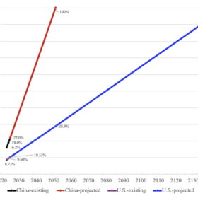 Al ritmo actual, Estados Unidos alcanzaría el 100 % de energía renovable en 2148, casi un siglo más tarde que China